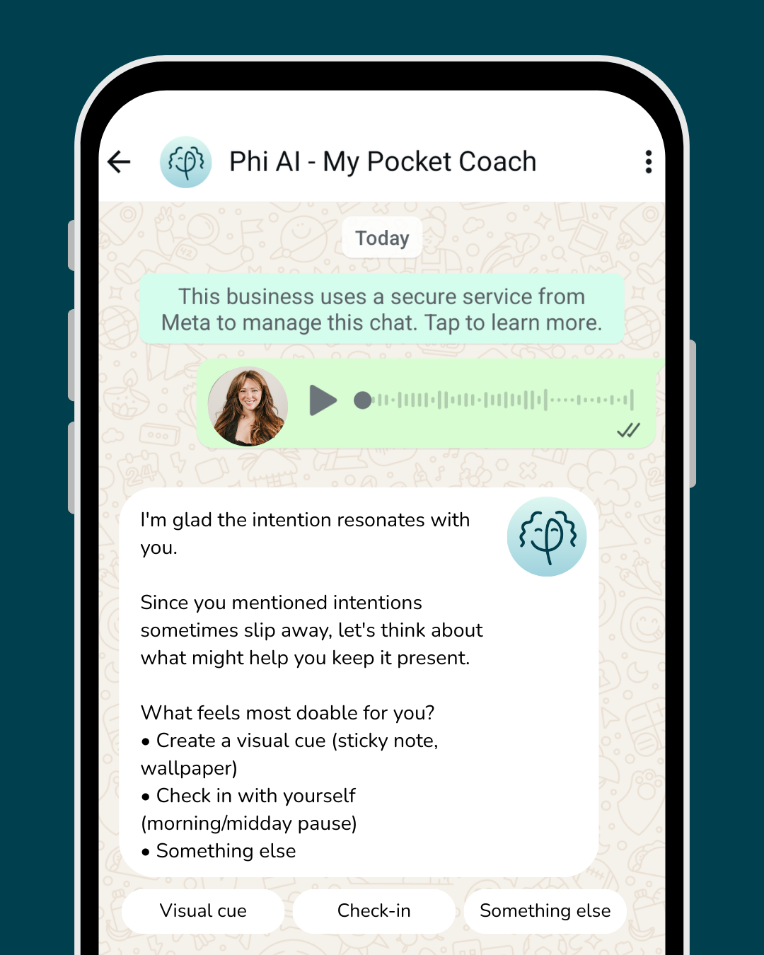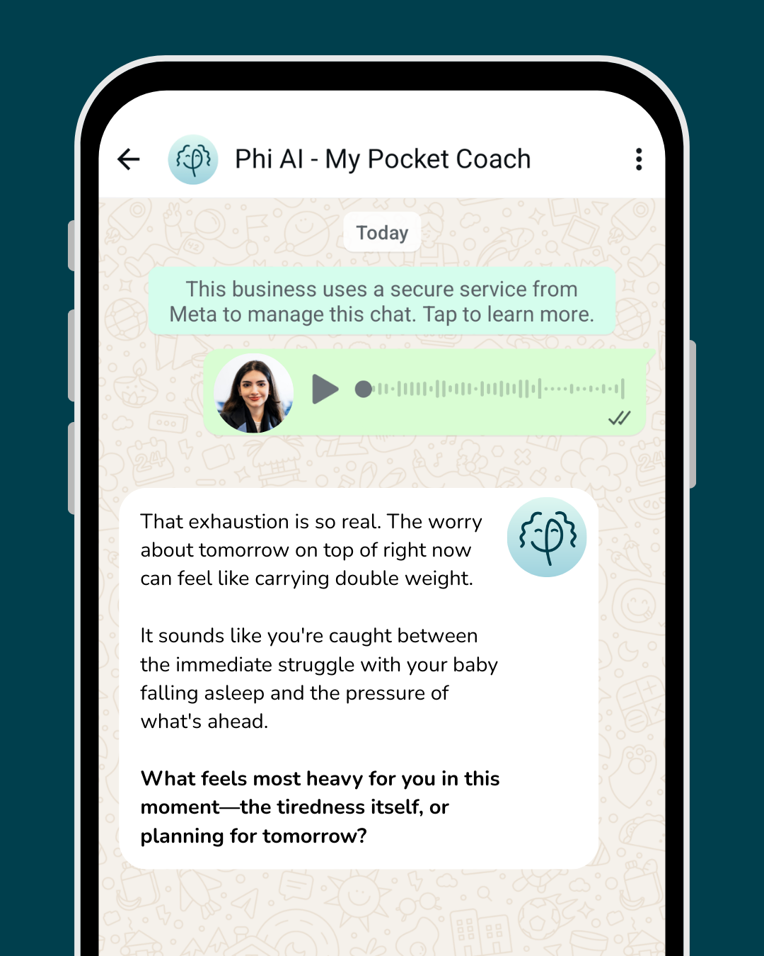 Try Phi FREE for 7 days on WhatsApp. No commitment, no download, no pressure. Just support when you need it.